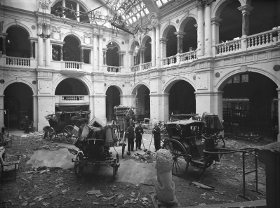While searching for Kings Weston related items an entry appeared for one of a collection of carriages in the City’s ownership. This was an early Nineteenth Century carriage used by the Duke of Beaufort of Badminton. During the war it had been on display in the rear atrium of the museum when, in 1941, a bomb detonated on the roof, completely destroying a biplane hung from the ceiling, and badly damaging the carriages. They were speedily removed to Kings Weston estate buildings for safe storage for the remainder of the war, where they must have stayed into the early 1950s when people recall seeing them. They reputedly received more damage from damp through the leaky roofs of the stables than they did in the initial blast!