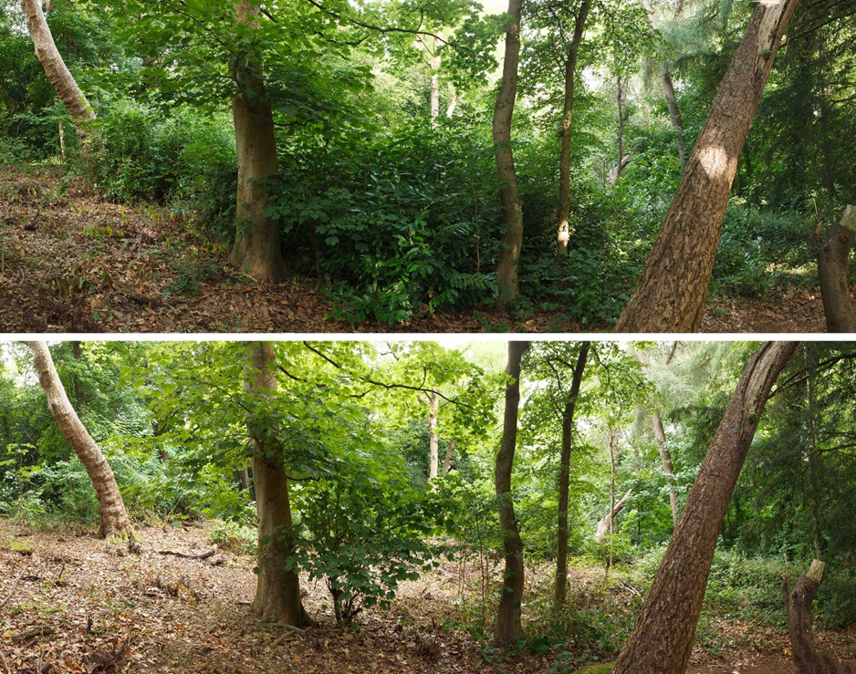 A relatively small group of volunteers, a usual state of affairs for the holiday season, set about putting things in order and extending the areas cleared in the last few months. Cherry laurel has been felled again, untangled from the brambles and stacked out of the way. More of the saplings planted in 2016 have also been revealed again in thriving condition. Whilst there remain some laurel bushes to the periphery of the area, ones we had neither time nor energy to tackle on a hot day, there’s not enough to occupy a full working party. These will be left for the moment while we focus on new areas.
