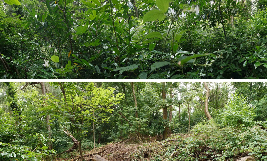 Worked carried on into July to clear the regrown cherry laurel in Penpole Wood. Most visitors will see little change from the recent work much is hidden well back from the main path through the woods. However, the impact of cherry laurel on the native woodland is severe if it’s let get out hand.
