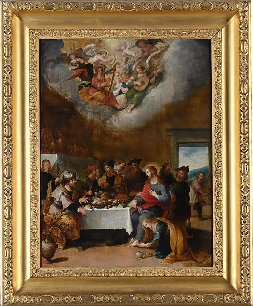 An inventory of the contents of the house in 1777 describes the painting as “The washing of our saviour’s feet” and the artist as “Old Frank”. This attribution has now been revised and is now considered to be by his son, Frans Francken the younger (1581-1642). The 18th-century attribution to Francken the Elder likely stems from the signature “D.o. ffranck,” where “D.o.” stands for the Flemish de oude, meaning “the Elder.” However, this signature was actually used by Frans Francken the Younger from the late 1620s. Prior to the death of his father in 1616, he had signed his works as “the young Frans Francken.”