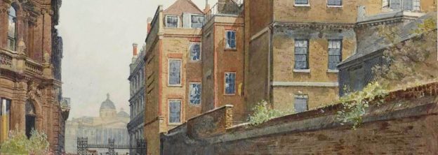 Eventually, the street frontage of the house was bookended by more Georgian town houses, the only indication of its higher status being its set-back from the street. A rather unsightly high wall created some privacy from the pavement, whilst a long single-storey passage and pedimented entrance brought the front door directly to the street.