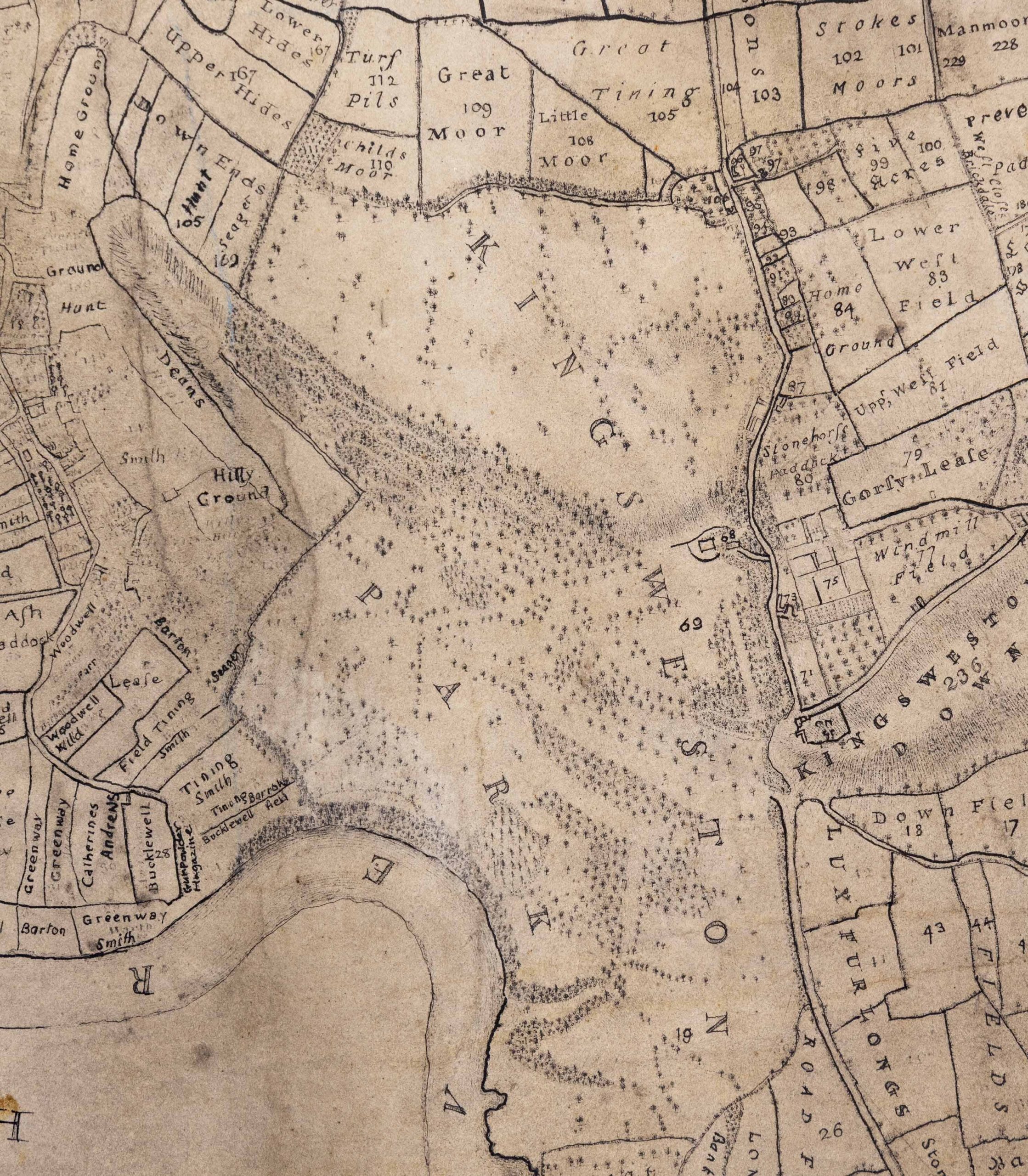 It was a bit of a surprise to find that well-rummaged archives can still turn up some historic Kings Weston gems. A recent return to Bristol Archives turned up, by chance, an interesting new estate plan. Perhaps we’d seen it before and thought it was a copy of a better known one, or perhaps we’d never thought it would be of any interest, but when it was delivered to the reading room by the archivists it was great interest.