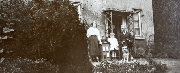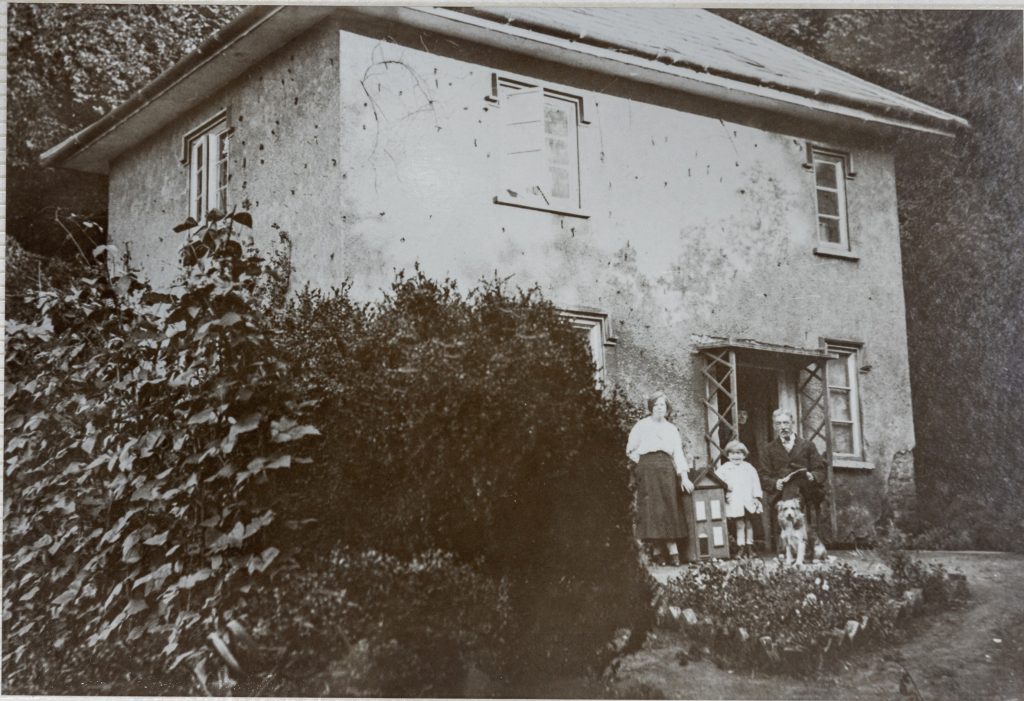 Keeper’s Cottage from the west, with the McEwen family and their dog Gyp.