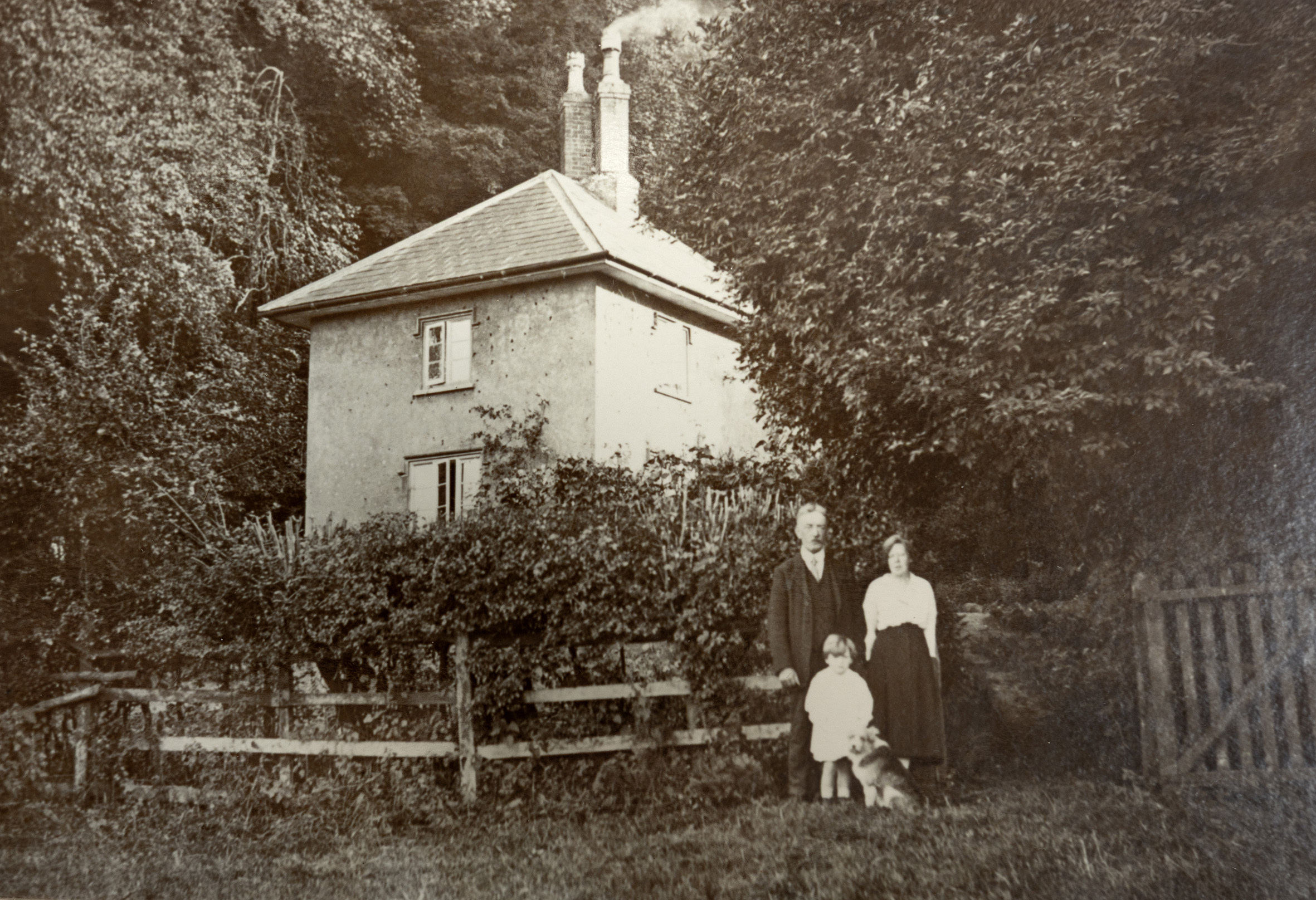 These two photographs record the Keepers Cottage in 1921 when it was the home of the McEwen family.  Arthur McEwan was head of the family and is seen with his wife Lilian, and their children Winifred and Arthur John, the latter just glimpsed at the door. The dog was Gyp.