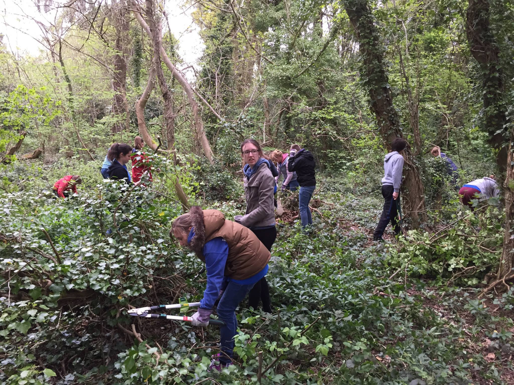 On 2nd May this year a large group of The Noise volunteers from Christian groups around Bristol came to Penpole Woods and commenced on the clearance of the old camp area. As with much of Penpole Wood, since the Second World War it has become largely unmanaged and overgrown. The recent work has restored a sense of openness to the area once more, and the Victorian specimen conifers – Coastal Redwood and Morinda Spruce – planted around its edges can now be seen to their full effect. (Find out more about these historic trees on our Tree Trail). It is hoped that the Clearing will offer different habitats to the main woodland area and that the clearing will add to the biodiversity of the estate. Volunteers also took up the challenge to clear dumped rubbish in the lower area of Penpole Wood behind Mancroft Avenue, making a huge impact on the amenity of the area.