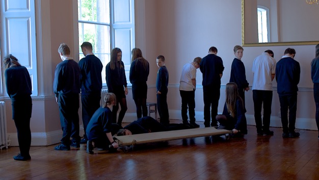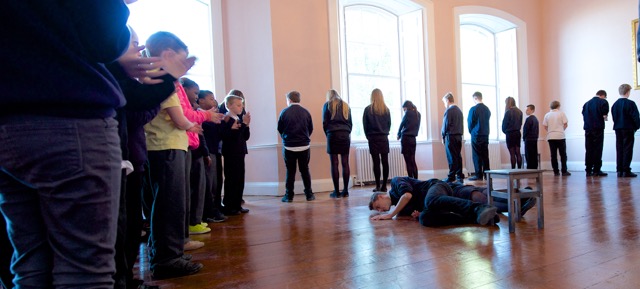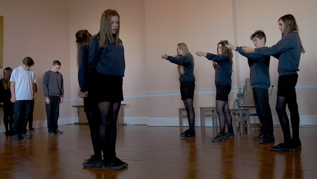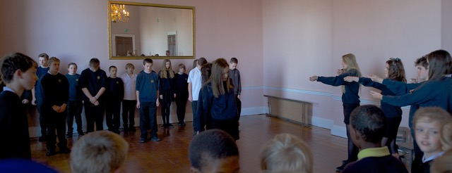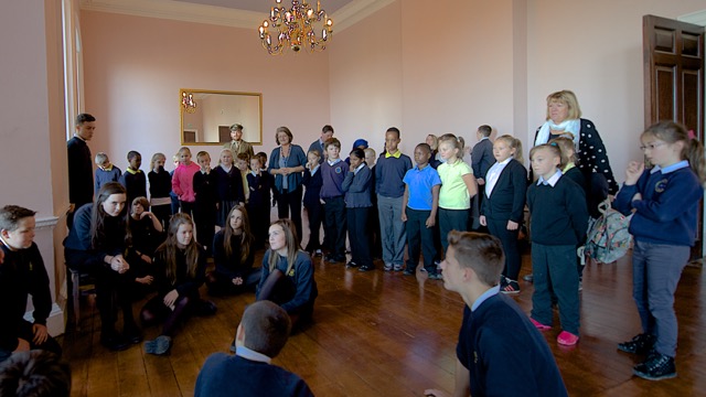 On the 21st English Heritage ran a Bristol-wide event for schools in its Heritage Schools Programme to commemorate the start of the First World War. At Kings Weston, just one stop on a coach tour from M Shed, Backfield School provided an in-the-round performance for visiting schools from across the City and volunteers from KWAG produced exhibition boards and staffed the event in period costume.