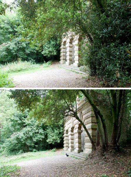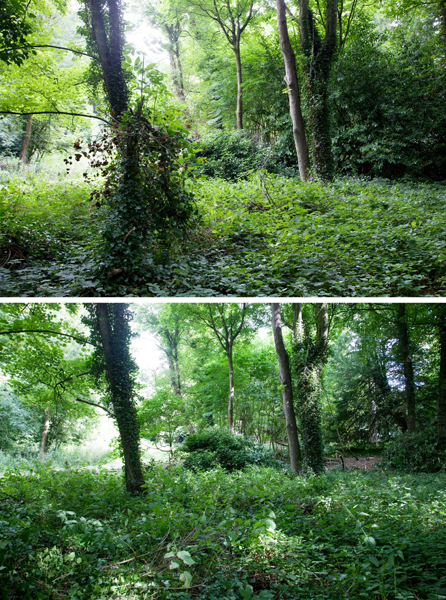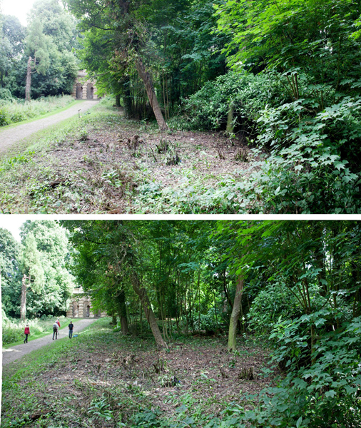We started clearance of overgrown laurels and ornamental maples to help open up the area around the Echo. We also started opening up views along paths leading to the building by removing a lot of overgrown bay.