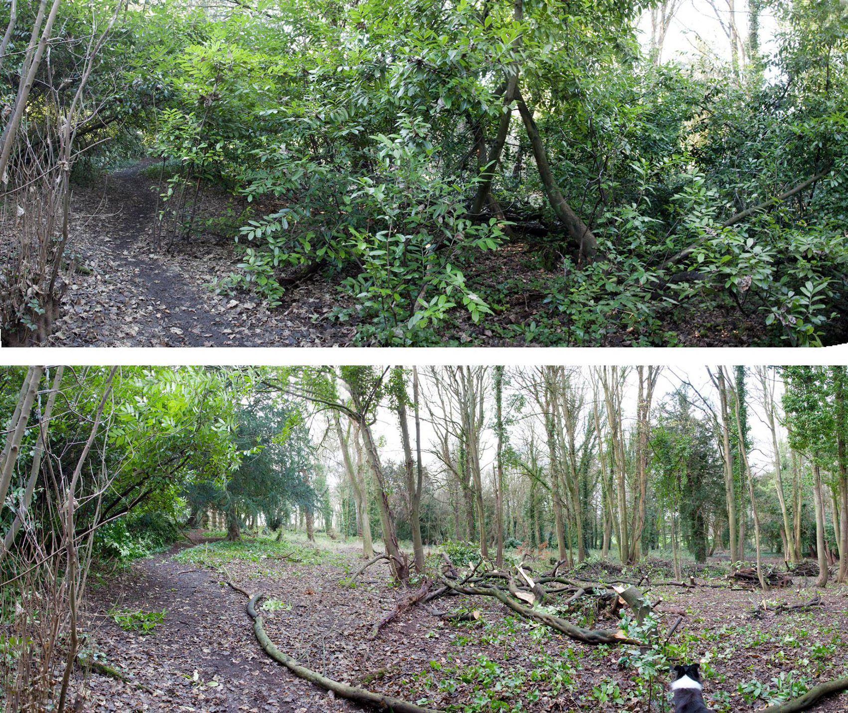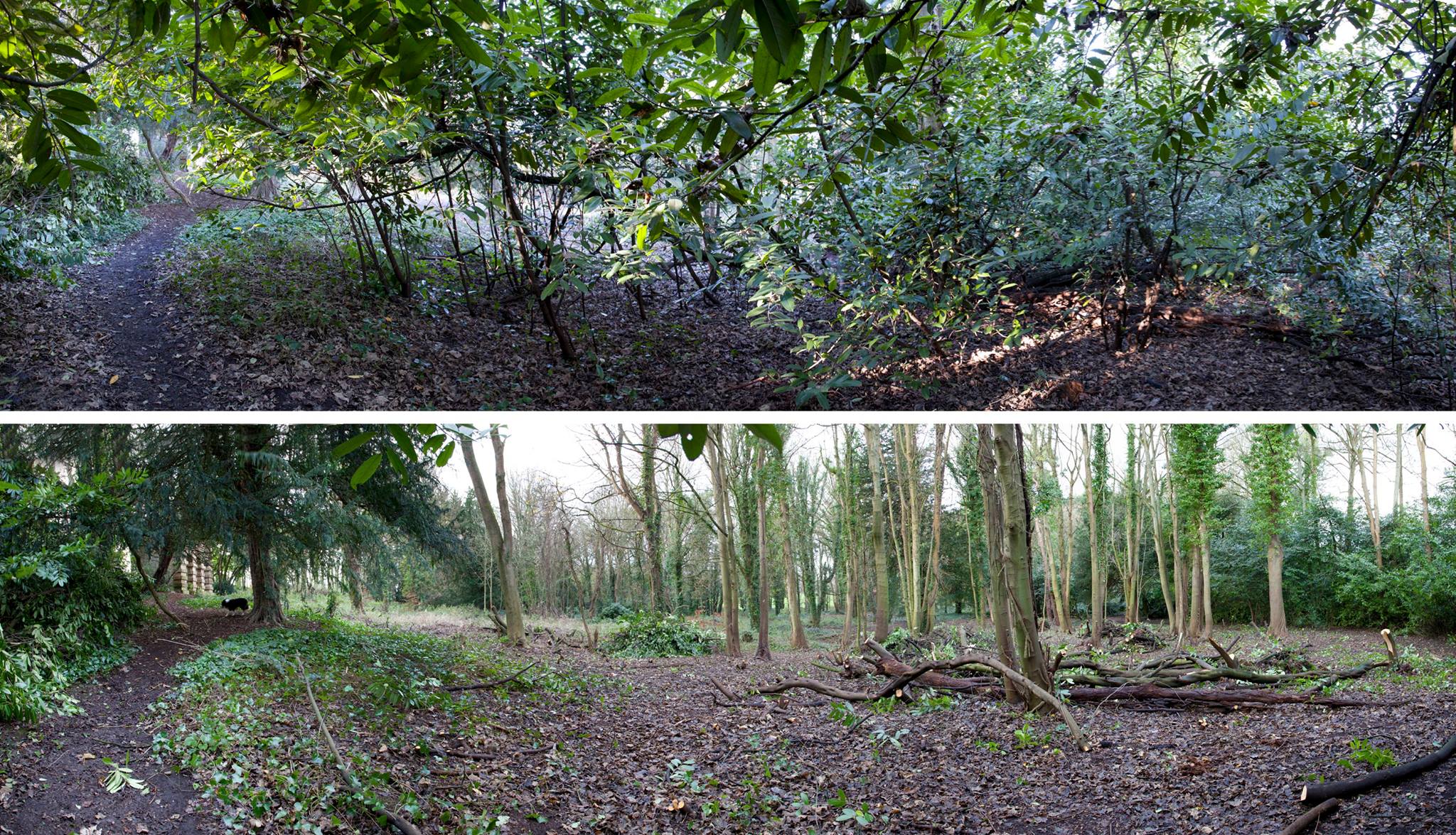 - Before and After. The narrow Georgian path leading through the woods to the Echo now looks down through the woodland. The branches on the left with the Echo beyond, and the trees in the distance on the right proves that this is the same location!