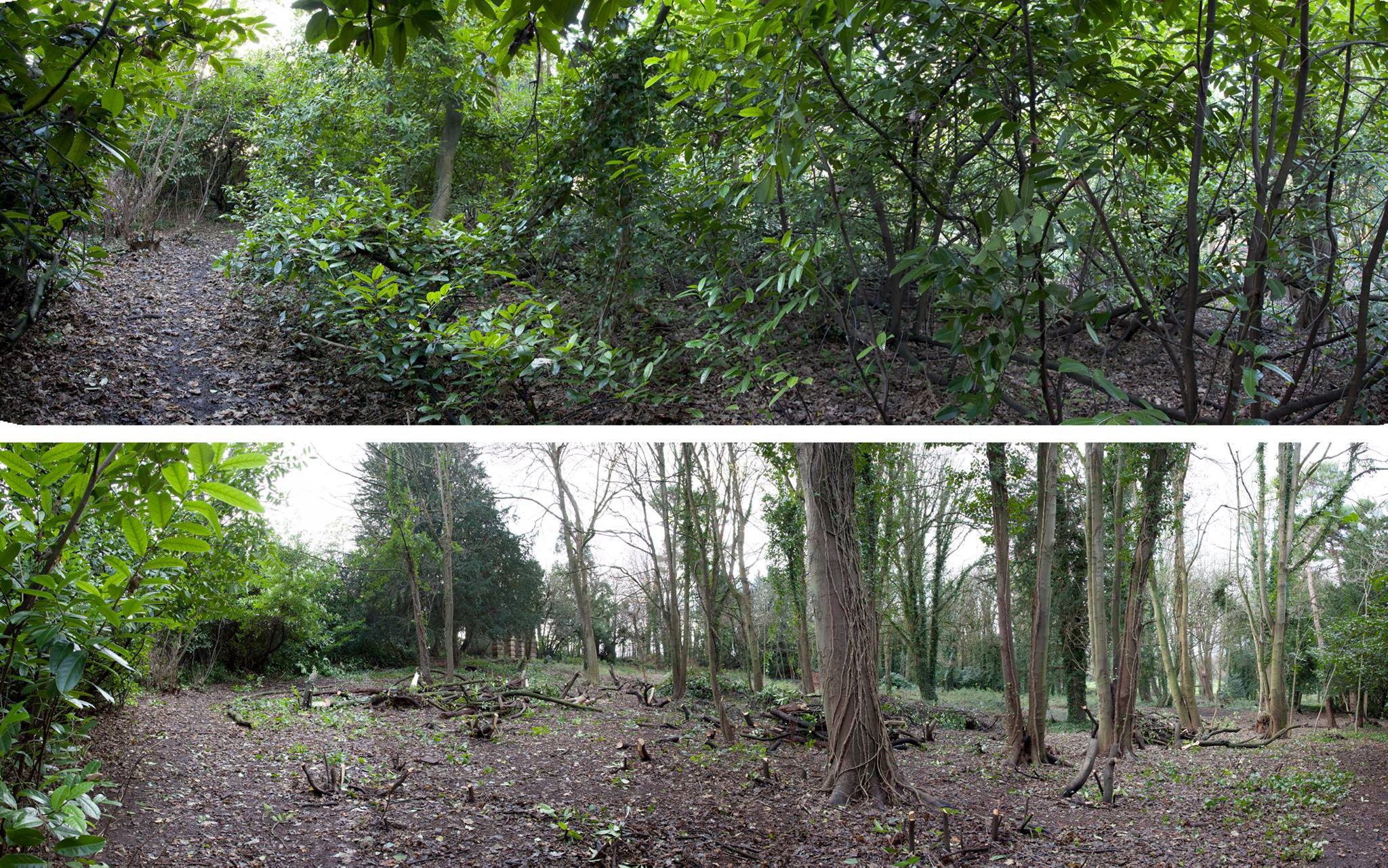 The laurel bushes have killed everything else off at ground level and prevented new trees and different species from growing. Our ambition now is to replant the area with native trees and shrubs and try to keep on top of the laurel to allow the area to grow in biodiversity.