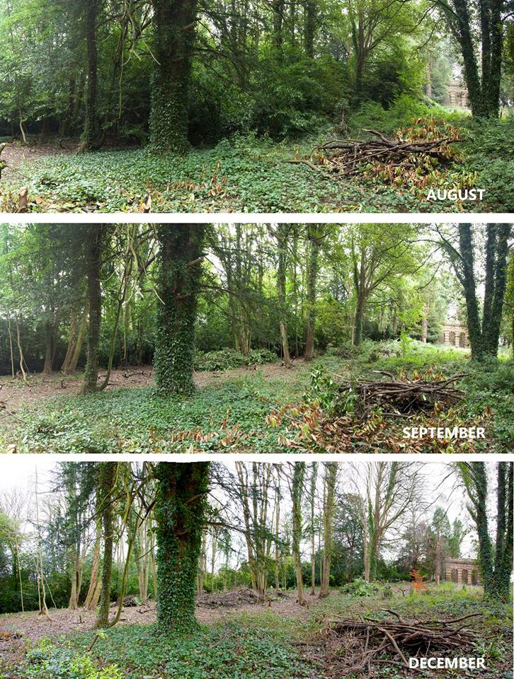 - October was our bulb planting event and November too wet for photos, but the progression of our clearance work is clear.