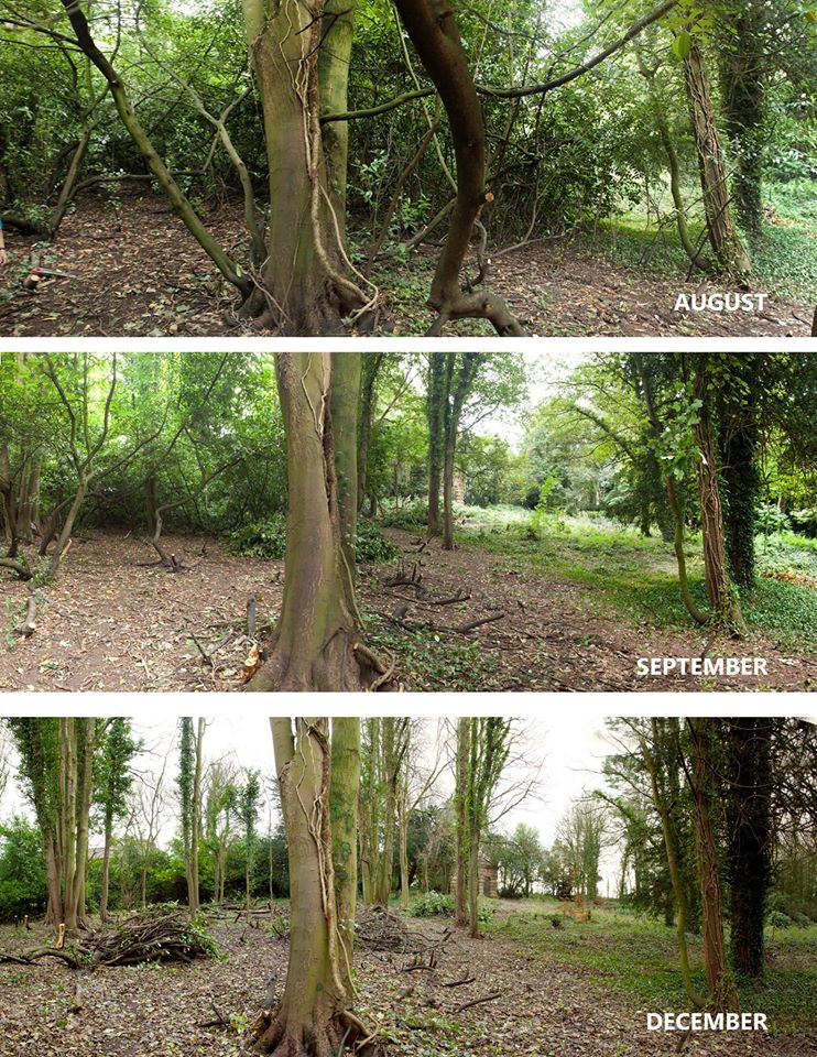 Finally, after working for six months on clearing laurels from the area between the ponds and the Echo we have achieved our objective. And what a difference it makes! It’s difficult now to remember how dark, inaccessible and lifeless the area was beneath the suffocating laurels was.