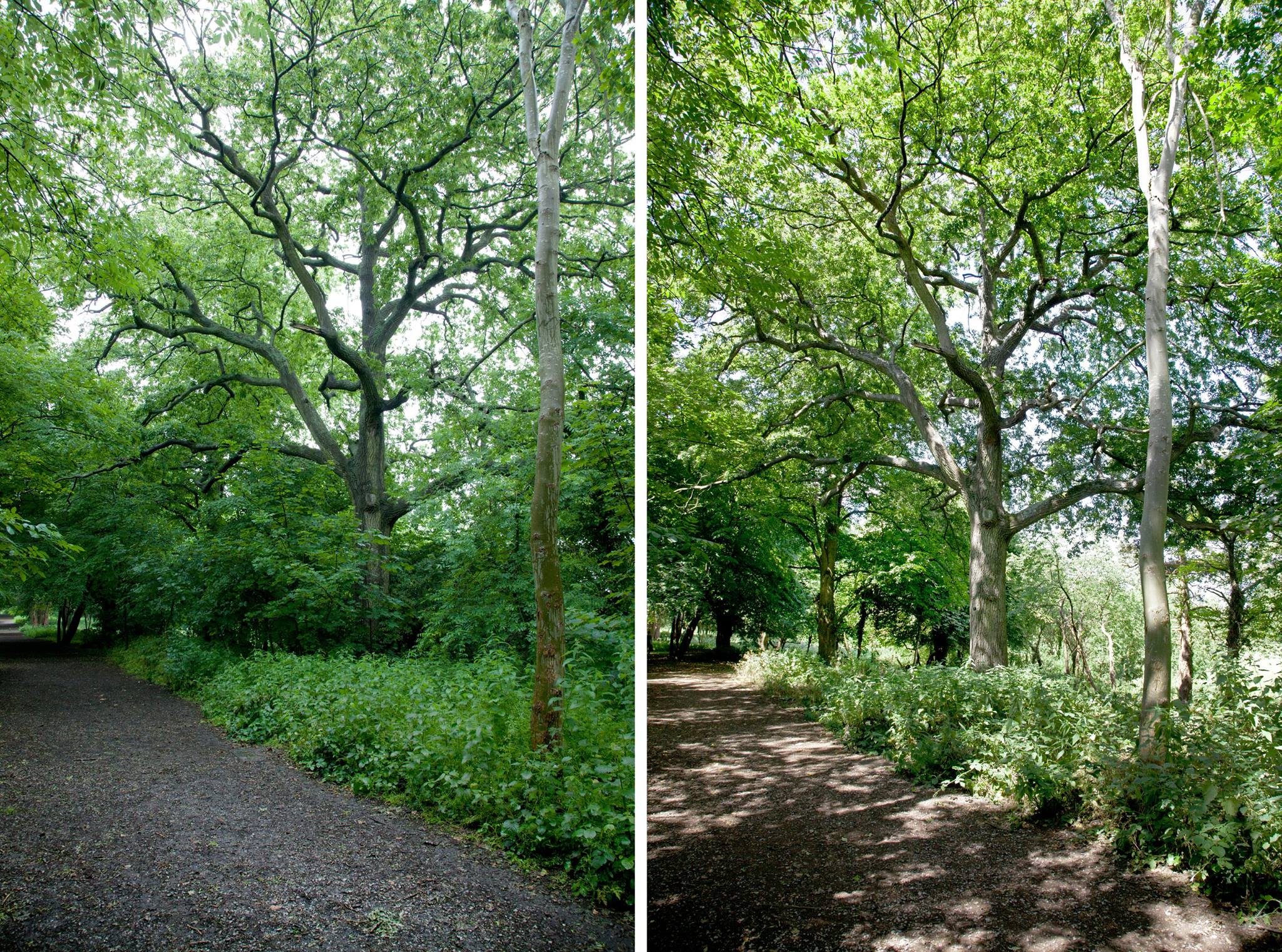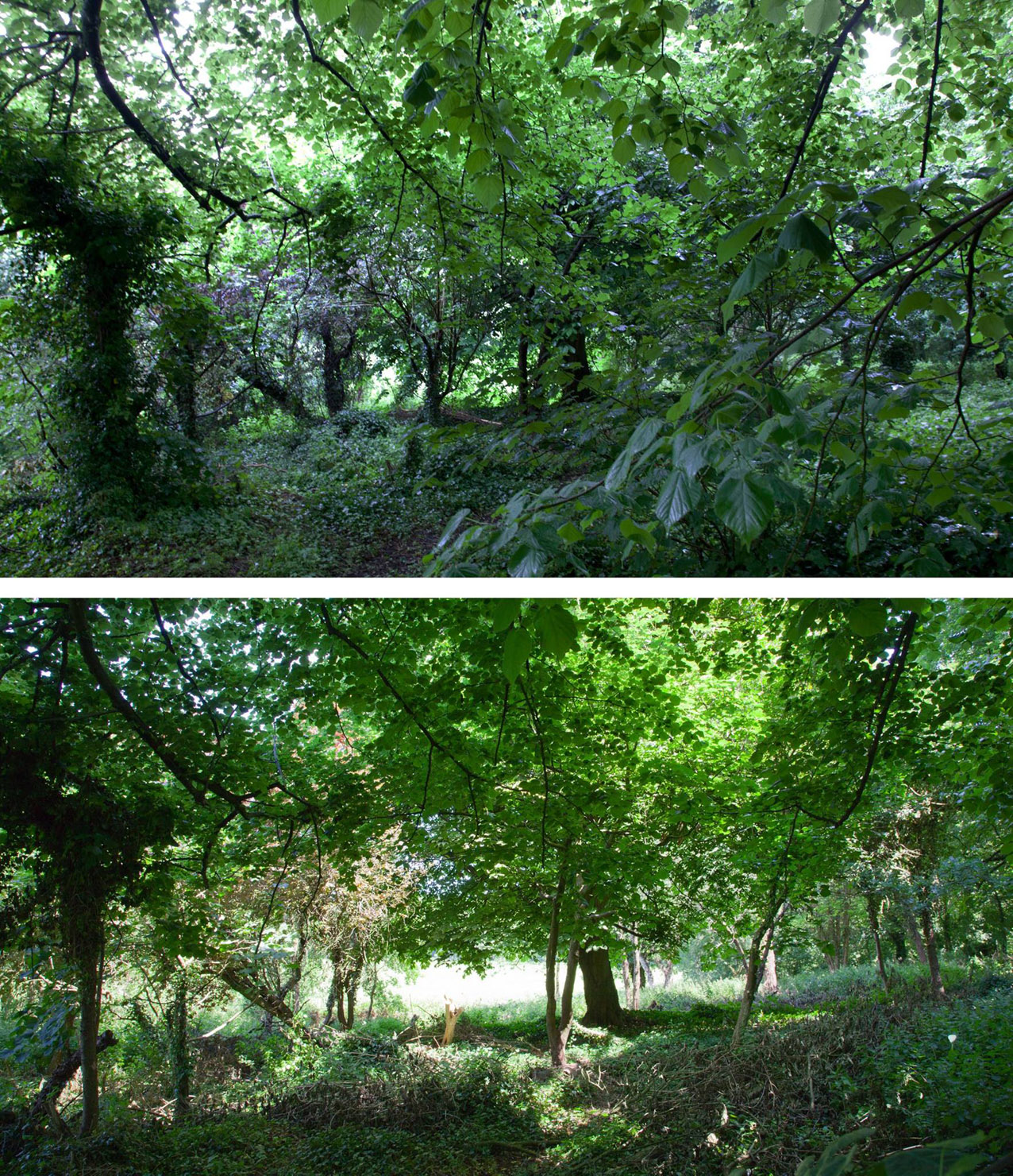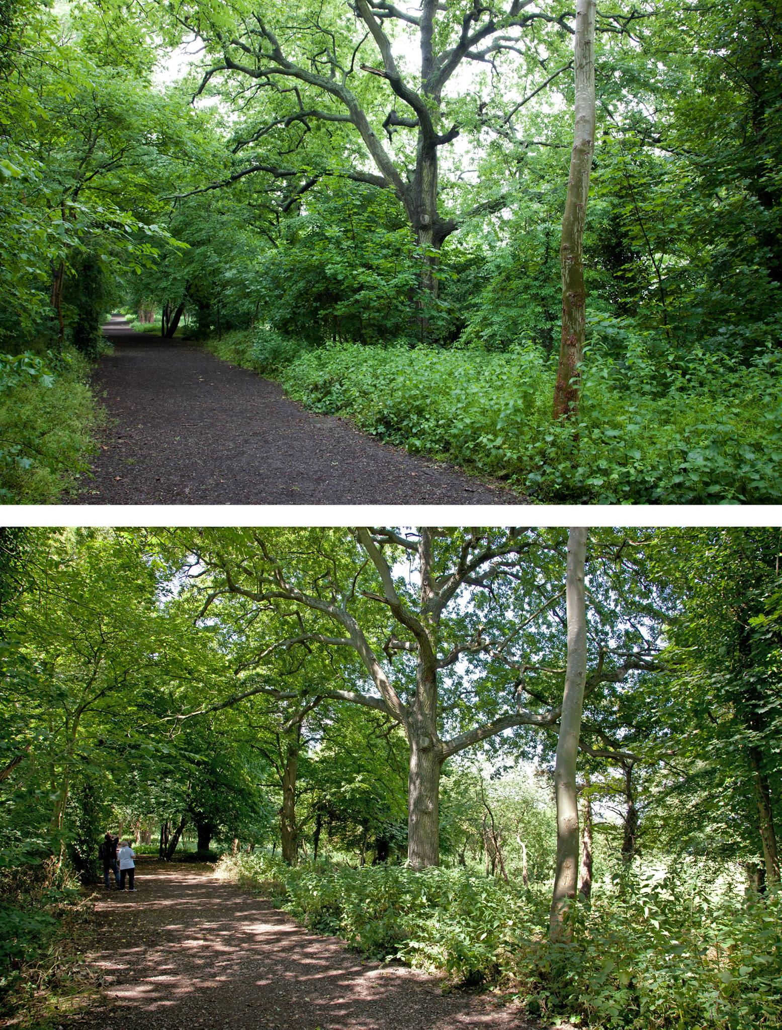 In June 2015 we continued work along the South Walk as part of our Lifting the Curtain project. The trees are denser here, and there is a deeper boundary between the path and the open meadow around Kings Weston house. Results have been impressive, but the views of the house less frequent. Never-the-less there have been additional benefits in having opened up views of some of the historic parkland trees that had been obscured by undergrowth, and now stand a better chance of thriving against more youthful competition! Click on the gallery images below the main images to see more.