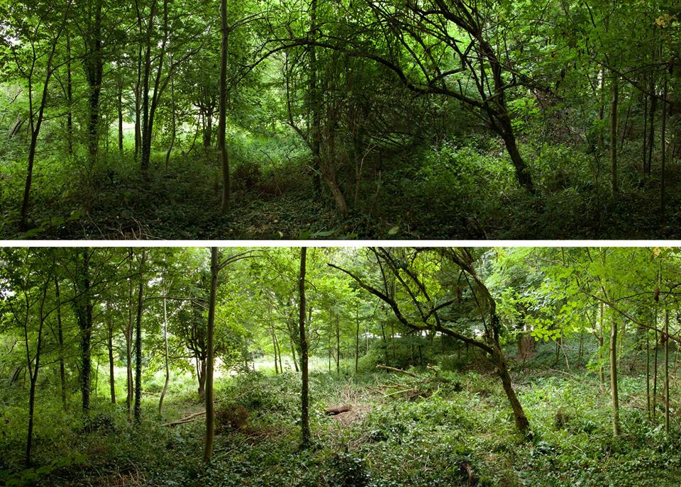 Following on from the previous months work we continued downhill from the ancient oak and targeted restoring visual connections between it and the meadow below the house. There were many mature trees here that will benefit from this work.