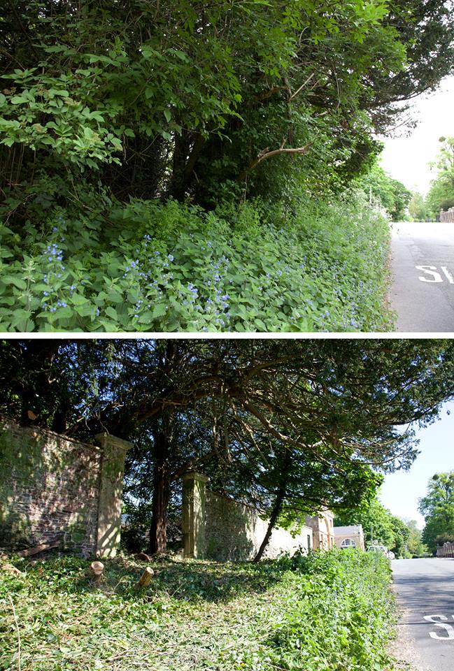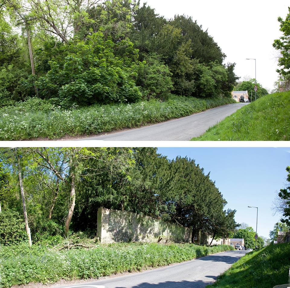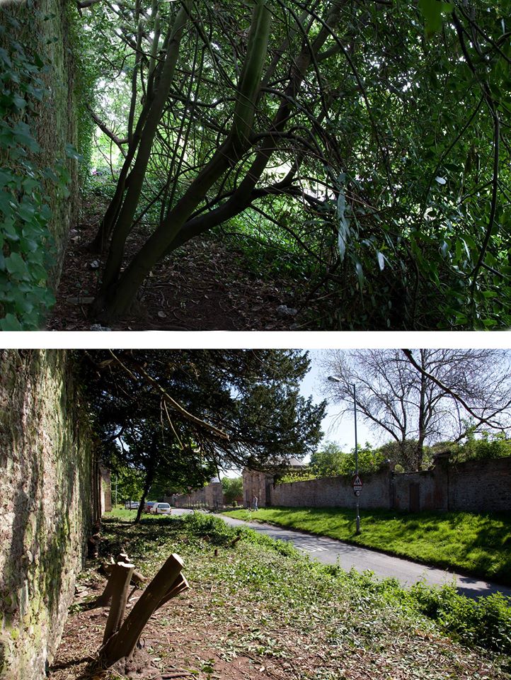 Ahead of the public opening of the walled gardens around Kingsweston School we set to clearing the front of the western section of the 1760s wall on the opposite side of Napier Miles Road.